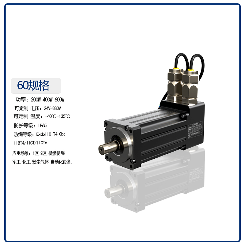 保定IIBT4/IICT4/IICT6防爆等級(jí)防爆伺服電機(jī)60系列200W400W應(yīng)用軍工化工粉塵氣體 1區(qū)2區(qū)0區(qū)防爆應(yīng)用AGV小車(chē)卷繞機(jī)灌裝機(jī)噴涂機(jī)